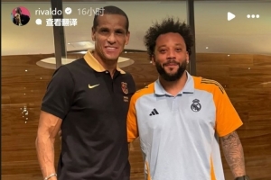 里瓦尔多在社交媒体上晒出与马塞洛的合照,配文:“我很尊重身边这个人,他踢得真棒。马塞洛,你的名字已经载入史册。”