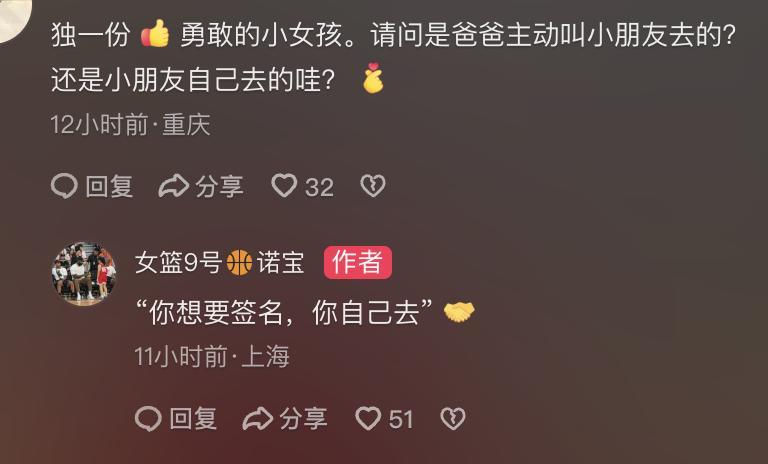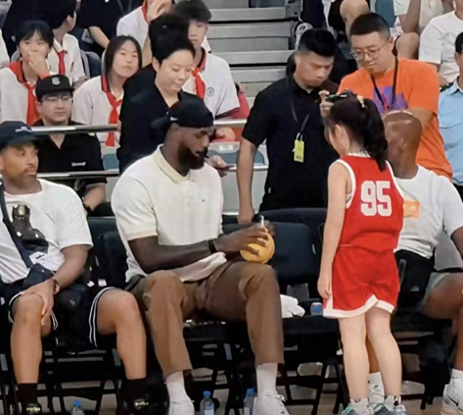 除此之外呢,这位小女孩的父亲也在社交平台回应了这一次拿到签名的始末,备受关注。从当天现场球迷拍摄的画面大家可以知道啊,这位中国小女孩一开始走向詹姆斯的时候,实际上詹姆斯的保镖是打算拒绝的。